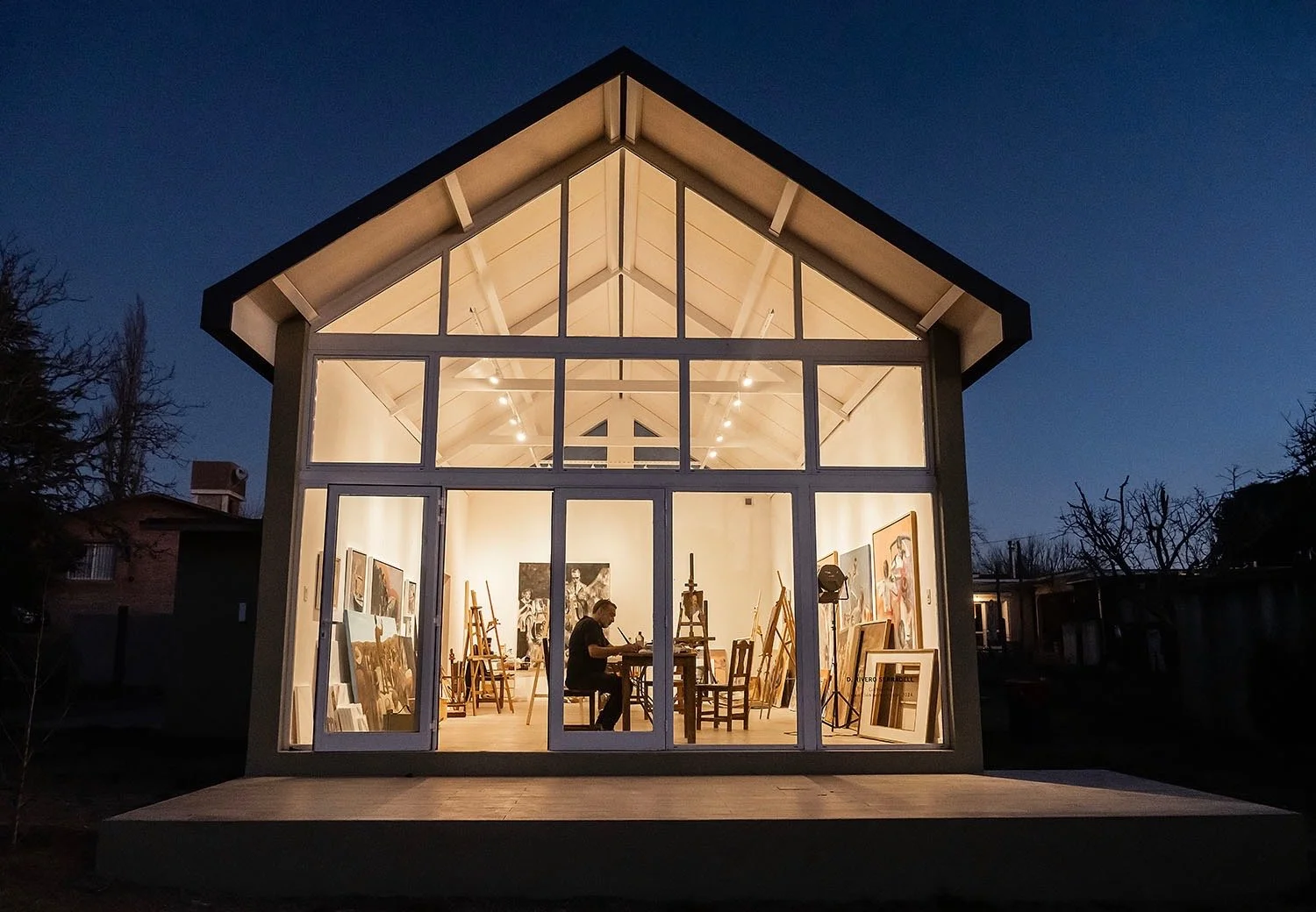Aquí es donde nace y crece mi obra: un espacio de trabajo, exploración y búsqueda constante, donde cada trazo de carbonilla y cada plano de color son parte de un acto diario de compromiso.